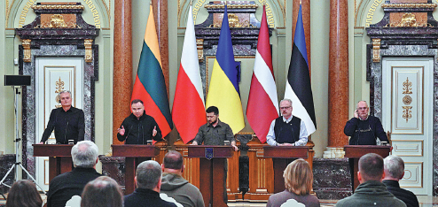 Reuters said the European presidents arrived in the Ukrainian capital by train as Russian forces have drawn from the country's north.