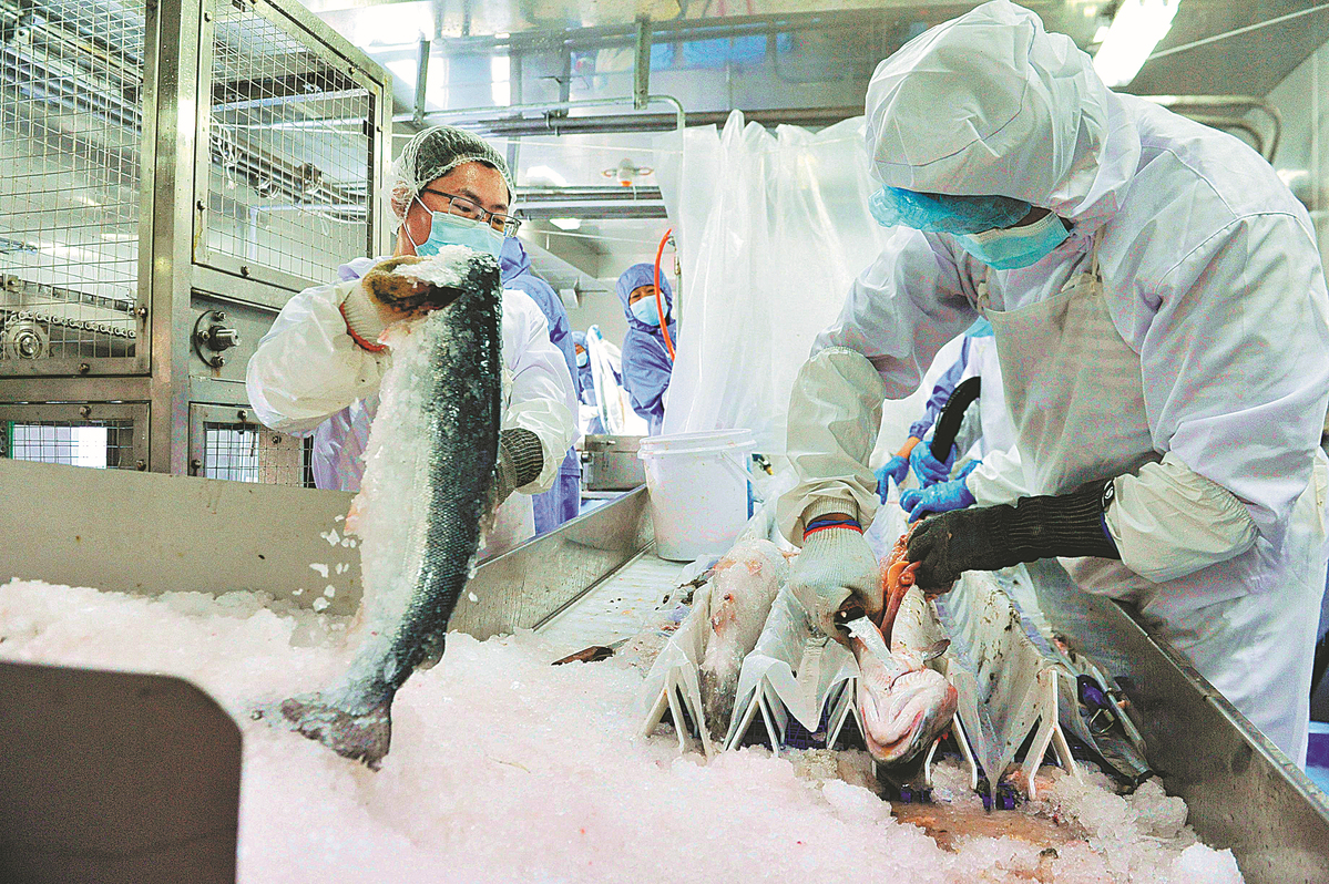 The ship, coded Conson No 1, was another major project featuring the local government's efforts of tapping into the aquaculture market, after Shenlan 1, China's first deep-sea fish farming facility, harvested its first batch of cultivated salmon in June in the Yellow Sea.