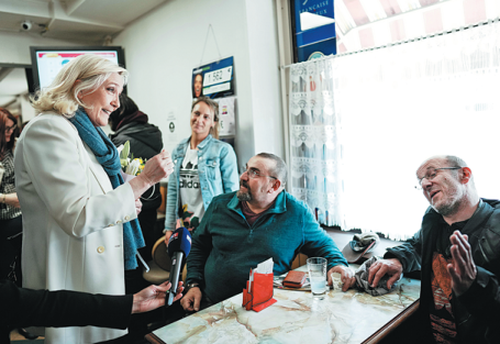 Le Pen is challenging Emmanuel Macron in a presidential election with opinion polls showing Macron edging ahead in next Sunday's runoff.