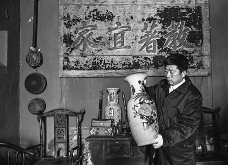 Huang Xinzhang had two special treasures, two military jugs-one for alcohol to keep the body warm, the other for water to keep the body cool. To save money, he stayed overnight in the waiting room of railway stations when traveling to collect old objects. Huang Jr. recalled that once, to save the freight for a large wooden wheel, his father dismantled the wheel and carried it bit by bit from the mountains.