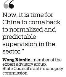 "To be normalized is mainly to make regulatory efforts routine and avoid fragmented supervision. Fragmented supervision is basically ignoring illegal or improper behavior during the initial development stage of a sector but suddenly starting to regulate it," said Wang, who is also director of the Center for Competition Law and Policy at Shanghai Jiao Tong University.