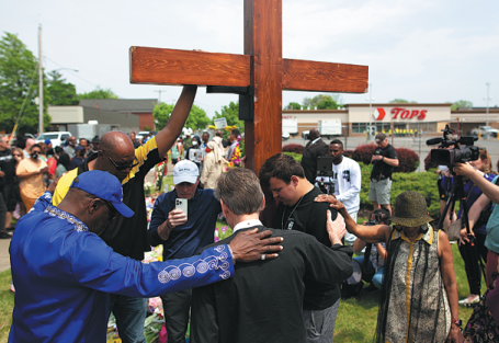 At the same time, Buffalo Mayor Byron Brown and other elected officials, with Tops President John Persons, bowed their heads on the steps of City Hall for 123 seconds to mark the span of the attack. Houses of worship throughout the city were encouraged to ring their bells 13 times in honor of the 10 killed and three wounded.