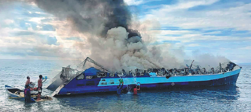 The fire appeared to have started in the engine room, Balilo said. A team of investigators was preparing to look into the cause.