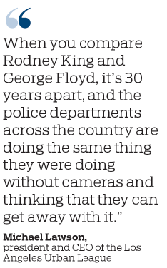 "When you compare Rodney King and George Floyd, it's 30 years apart, and the police departments across the country are doing the same thing they were doing without cameras and thinking that they can get away with it," Lawson said. The difference with Floyd's murder is that it resulted in a conviction, in 2021, he added.