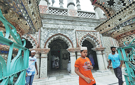 Hafez Muhammad Arif Reza is Chini Masjid's muezzin, who proclaims the call to daily prayer five times a day. He said the mosque was built in 1863 by Haji Bakir Ali Ahmed as a little prayer room. Descendants of Ahmed extended and modified the masjid, beautifying it with decorative Chinese ceramics brought from Kolkata, India. "The people built the mosque gradually with their own contributions," Reza said.