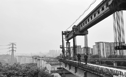 Located in Jiangbei district, Chongqing, the bridge, which has a total length of 1.81 kilometers, is being built in rugged terrain with many transportation lines operating "shoulder to shoulder"-three railway lines, five highway lanes and a power line underneath-presenting many difficulties for the builder, China Railway 24th Bureau Group Corp Ltd, a unit of State-owned China Railway Construction Corp Ltd.
