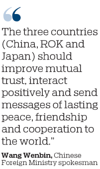 Wang said participants had an in-depth exchange of views over trilateral cooperation and shared their views on promoting the institutionalization of cooperation, driving inclusive growth and enhancing cultural exchanges.