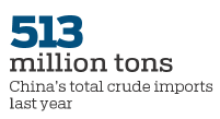 Total crude imports declined last year to 513 million tons, down 5.3 percent year-on-year-the first such fall in the last 20 years, thanks to increasing efforts of domestic energy companies in local oil field exploration and exploitation in the past few years, it said.