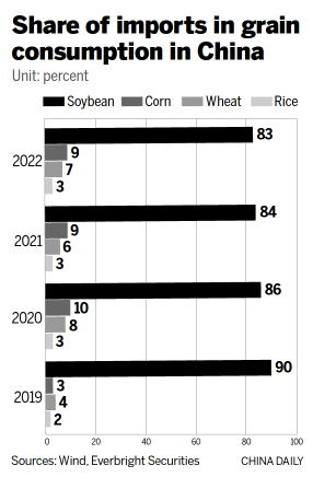 First is soybeans. China relies heavily on soybean imports, and they normally constitute more than 80 percent of domestic soybean consumption. Soybean prices in China basically follow the fluctuations in international prices. Since 2021, price transmission from the global soybean market to the domestic soybean market is between 85 percent and 100 percent.