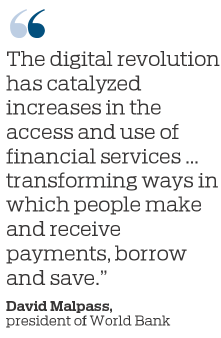 "The digital revolution has catalyzed increases in the access and use of financial services across the world, transforming ways in which people make and receive payments, borrow and save," said World Bank Group President David Malpass.