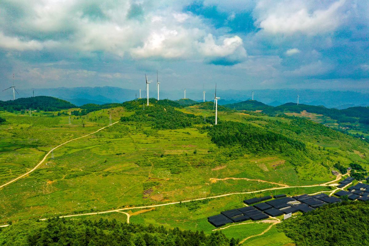 A large-scale wind farm is located on the high hills of Kaiyang county, Guizhou province. [Photo by Yuan Fuhong/provided to chinadaily.com.cn]