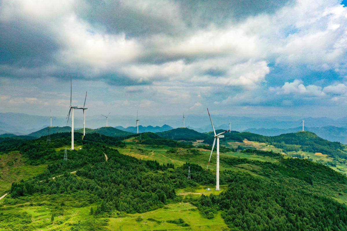 A large-scale wind farm is located on the high hills of Kaiyang county, Guizhou province. [Photo by Yuan Fuhong/provided to chinadaily.com.cn]