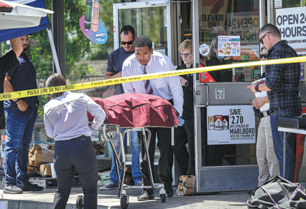 On the same day of the White House event, two people were killed and three wounded in robberies before dawn at six 7-Eleven stores in Southern California. Authorities said they were seeking the same lone gunman in at least three of the crimes.