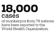 GENEVA/PARIS-Europe and the Americas are the regions most affected by the fast-spreading monkeypox outbreak, World Health Organization chief Tedros Adhanom Ghebreyesus said on Wednesday.
