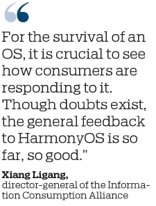 "For the survival of an OS, it is crucial to see how consumers are responding to it. Though doubts exist, the general feedback to HarmonyOS is so far, so good," Xiang said.