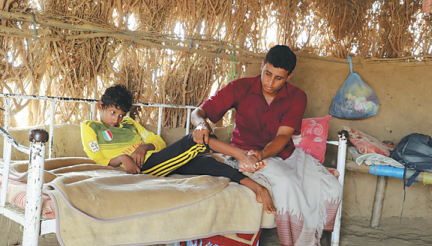 "I was playing alone when that projectile fell and exploded near my house, pushing me up in the air," said the 12-year-old Yemeni boy, sitting on his rickety bed made of wood and ropes in front of his family's house located in the outskirts of Midi. "I saw my blood running from my body."