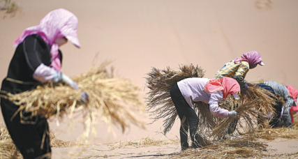 The ruyi's long handle reaches far northwest, crossing the Yellow River, along the Qilian Mountains and the 1,000-kilometer Hexi Corridor-the artery connecting China with Central Asia that served as a conduit for Buddhism, trade and military ventures in ancient times-and meeting a part of the Kumtag Desert in Dunhuang, home of the UNESCO Cultural Heritage site Mogao Grottoes.