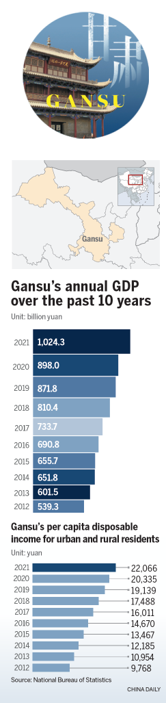 Last year, the income of people lifted out of poverty exceeded 10,000 yuan ($1,474) per capita in Gansu for the first time. Their disposable income grew from 2,415 yuan in 2013 to 8,539 yuan in 2020.