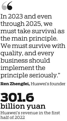 "We must tone down overly optimistic expectations about the future. In 2023 and even through 2025, we must take survival as the main principle. We must survive with quality, and every business should implement the principle seriously," Ren said.