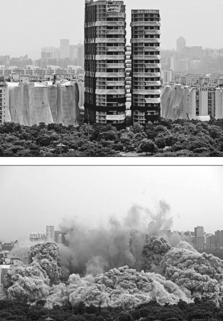 NEW DELHI-The demolition of two towers near New Delhi found to have been shoddily built has been welcomed in India as conveying a stern message to construction companies violating the law.
