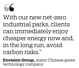 "With our new net-zero industrial parks, clients can immediately enjoy cheaper energy now and, in the long run, avoid carbon risks," said the company.
