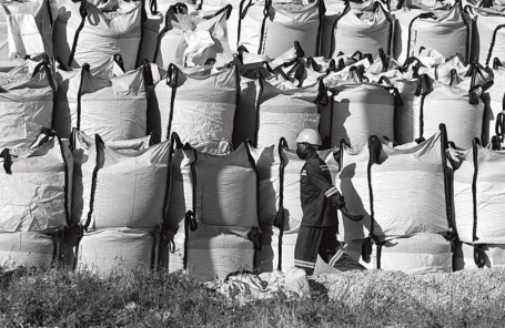 Bags of lithium ore are stacked at the Bikita mine in Zimbabwe's Masvingo Province on June 17. A Chinese firm bought Bikita Minerals in January and began upgrading its facilities in June. XINHUA