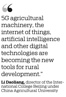 "5G agricultural machinery, the internet of things, artificial intelligence and other digital technologies are becoming the new tools for rural development," said Li Daoliang, director of the International College Beijing under China Agricultural University.