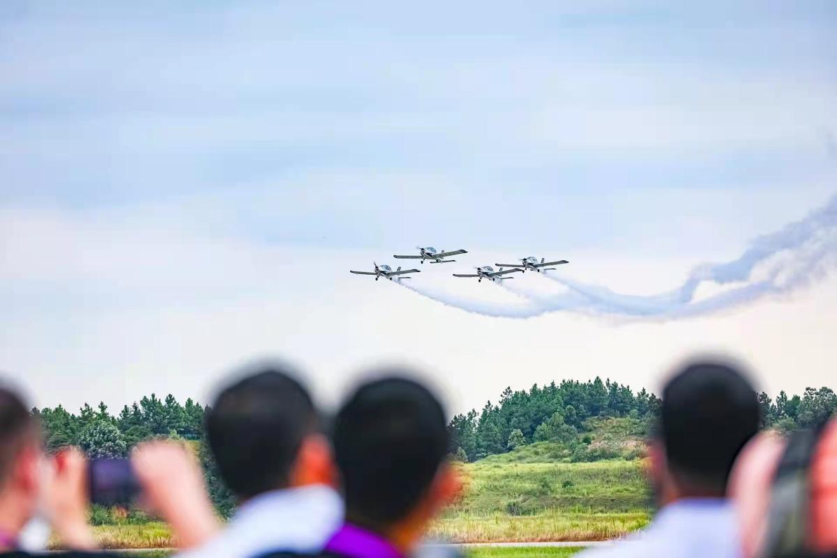 Among them was Hunan Shanhe Team, the country's first folk aerobatic team, who flew an ultralight aircraft made by a local manufacturer in Zhuzhou. The plane - SA60L - has reached international level in terms of its performance and safety, according to Hunan Shanhe Science and Technology Co.
