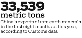 China is the world's largest exporter and reserve owner of rare earth metals. Its exports of rare earth minerals grew 5.7 percent year-on-year to 33,539 metric tons in the first eight months of this year, statistics from the General Administration of Customs showed.