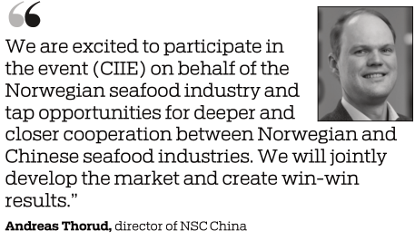 "At the upcoming China International Import Expo, NSC, for the first time, will have a stand. We are representing the whole of the Norwegian seafood industry, as well as eight Norwegian seafood companies that are official participants at the 'Seafood from Norway' booth," Thorud said.