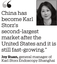 "China has become Karl Storz's second-largest market after the United States and it is still fast-growing," said Joy Ruan, general manager of Karl Storz Endoscopy Shanghai. "We expect the Chinese market to surpass that of the US in five to 10 years."