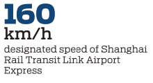 With a total length of 68.6 km and a designated speed of 160 kilometers per hour, the Shanghai Rail Transit Link Airport Express starts from the Hongqiao transportation hub, passes through Pudong International Airport and extends to Shanghai East Railway Station.