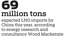 China's LNG imports are set to fall over 14 percent year-on-year to 69 million tons this year, said energy research and consultancy Wood Mackenzie earlier.