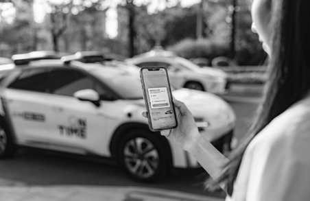 A passenger uses a robotaxi service app in Guangzhou, capital of Guangdong province. CHINA DAILY
