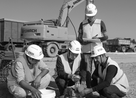 With the test section done, officials overseeing the A380 highway project and representatives of the Asian Development Bank inspected the site and exchanged opinions on construction plans with CR20G, providing important suggestions for the design of the pavement structure of rural roads in Uzbekistan.