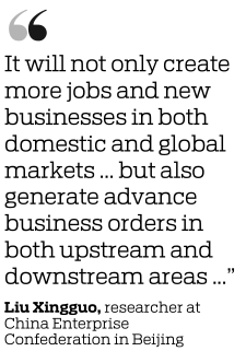Liu said, "It will not only create more jobs and new businesses in both domestic and global markets over the long run, but also generate advance business orders in both upstream and downstream areas, helping to stabilize the expectations of SMEs."