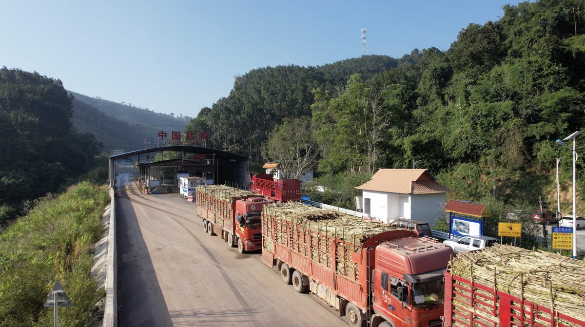Trucks loaded with sugarcane from Laos completed entry procedures at the Mengman port on the China-Laos border in Xishuangbanna Dai autonomous prefecture, Yunnan province, earlier this month. [Photo by Lyu Liangfei / for chinadaily.com.cn]
