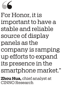 Apart from mobile phones, Honor offers a wide range of terminal devices including tablets, laptops, televisions and wearables, which will provide a large number of orders for BOE, said Zhou Hua, chief analyst at CINNO Research, a Chinese flat-panel display consultancy.
