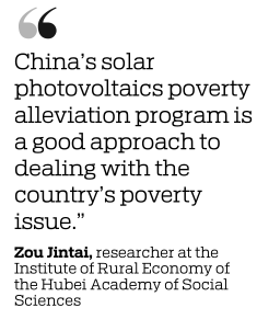 "China's solar photovoltaics poverty alleviation program is a good approach to dealing with the country's poverty issue," said Zou Jintai, a researcher at the Institute of Rural Economy of the Hubei Academy of Social Sciences.