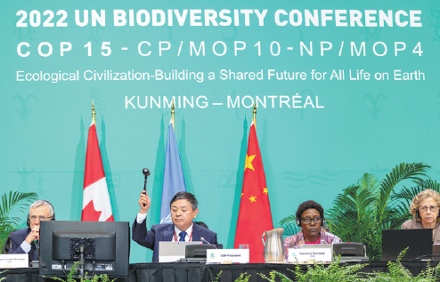 The framework, presented two years late because of the pandemic, was agreed upon by 195 countries and the European Union at the 15th Conference of the Parties to the UN Convention on Biological Diversity on Monday. It commits the parties to stop and reverse biodiversity loss by 2030.