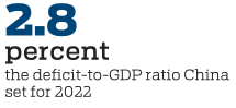 China has set the deficit-to-GDP ratio at around 2.8 percent for 2022 and at around 3.2 percent for 2021.