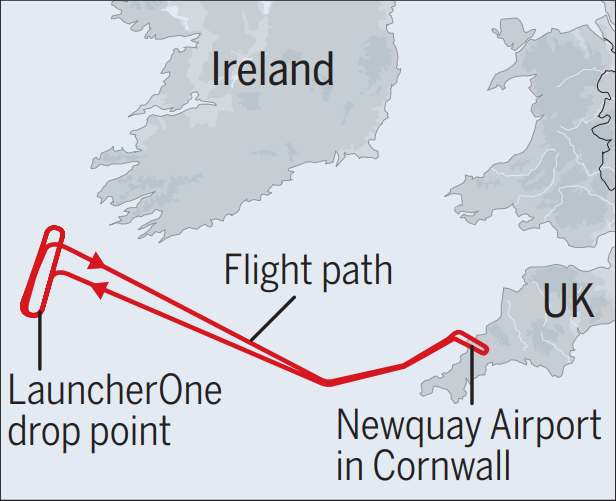 The Evening Standard newspaper said that, if successful, the Virgin Orbit Start Me Up mission would kick-off a UK satellite launch industry.