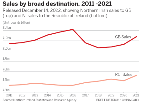The figures, from the Northern Ireland Statistics and Research Agency, suggest trade rose by 7 percent in the year after the protocol was introduced in late 2020, equating to a boost of more than 1 billion pounds ($1.2 billion).