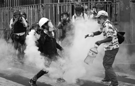 Hooded protesters wielding shields, stones and pieces of cement pried from public buildings fought with police in a fog of tear gas, as Lima became the scene of scuffles, and the city's first death from the protests was recorded.