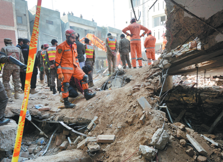What was left of the roof then caved in, injuring many more, police officer Zafar Khan said. Rescuers had to remove mounds of debris to reach people still trapped under the rubble.