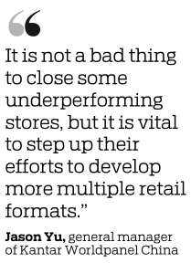 "This has a lot to do with their singular format (the hypermarket) despite their exploration into high-end membership stores and reforms on supply chains," said Yu. "It is not a bad thing to close some underperforming stores, but it is vital to step up their efforts to develop more multiple retail formats."