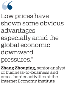 Zhang Zhouping, a senior analyst of business-to-business and cross-border activities at the Internet Economy Institute, said price, quality and service are the most important factors to consider selling merchandise to consumers. "Low prices have shown some obvious advantages, especially amid the global economic downward pressures."
