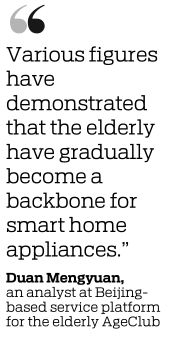 "Various figures have demonstrated that the elderly have gradually become a backbone for smart home appliances. Although there is rising demand for such products, aging consumers still face some difficulties," said Duan Mengyuan, an analyst at Beijing-based service platform for the elderly AgeClub.