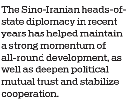 The Sino-Iranian heads-of-state diplomacy in recent years has helped maintain a strong momentum of all-round development, as well as deepen political mutual trust and stabilize cooperation.