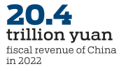 He noted that China's fiscal capacity has been enhanced in recent years, with the country's fiscal revenue growing from 17.3 trillion yuan ($2.52 trillion) in 2017 to 20.4 trillion yuan in 2022.
